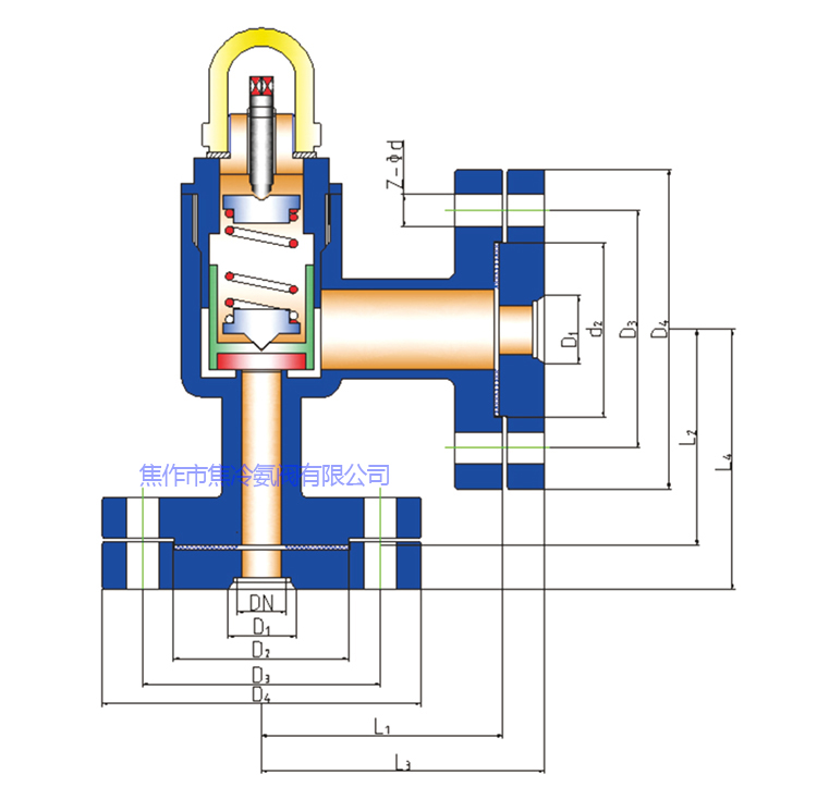 1.用途:本閥門為封閉式全啟安全閥,適用于工作溫度-50℃至+150℃有腐蝕性及環(huán)境不能外泄的特殊介質(zhì)的制冷設備及相關管路上,做為超壓保護裝置,介質(zhì)包括:氨、氟、丙烷和C02等;